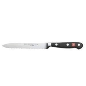 When you want to add flavorful sausage pieces to your favorite pizzas, casseroles or stuffing, reach for this Wusthof Classic Serrated Sausage knife. Its long serrated blade makes for effortless slicing.