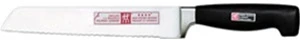 The long, scalloped blade on this Henckels Four Star Bread Knife is designed to easily slice through a loaf of bread. It’s forged from high-carbon stainless-steel and ice-hardened for a sharper, more long-lasting edge. Polypropylene handle, full tang and a unique bolster ensure exceptional balance and comfort. Dishwasher safe.