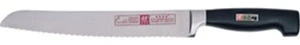 This unique Country Bread Knife from Henckels Four Star Line is perfectly designed to slice through a rustic loaf of bread without crushing it. It’s forged from high-carbon stainless-steel and ice-hardened for a sharper, more long-lasting edge. Polypropylene handle, full tang and a unique bolster ensure exceptional balance and comfort. Dishwasher safe.