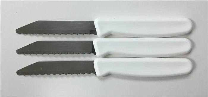 Features a high-performance 3.25″ stainless steel blade, non-piercing safety-tips, light-weight professional safety handles.
