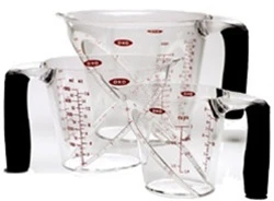 This OXO GOOD GRIPS 3 piece Angled Measuring Set comes with 1-cup, 2-cup, and 4-cup measuring cups.