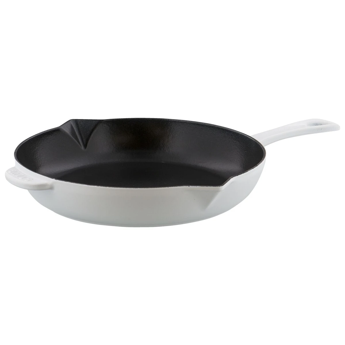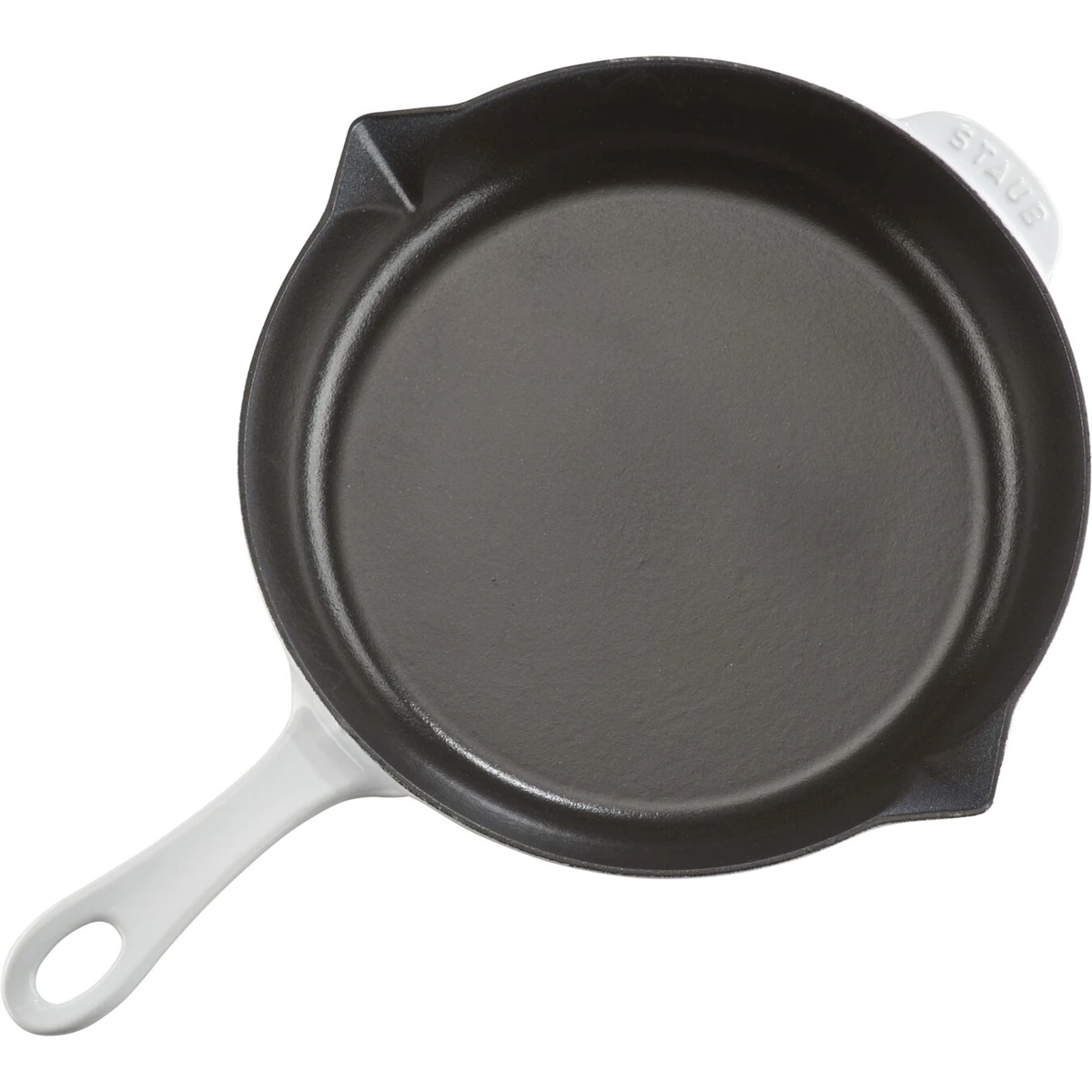 The Staub fry pan browns foods beautifully, be it chicken breasts, potatoes, or bacon. The enameled black matte interior imparts texture, promoting exceptional browning. Cast iron offers steady, even heat distribution, so the temperature of the pan won’t drop as you cook. Low, curved sides make it easy to flip the food, which releases easily.Staub enameled cast iron cookware is the choice of the world’s best chefs. With exceptional durability, it is perfect for day-to-day use in both gourmet home kitchens and prestigious restaurants around the world. Each piece transitions beautifully from the kitchen to the table. Built to last a lifetime, these heirloom pieces can be passed from generation to generation.