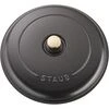 The Staub Cast Iron 3.5-qt Braiser is the perfect pot for one-dish suppers, braised lamb shanks, and breakfast hash. It will quickly become your go-to cooking vessel, perfect for sauteing, frying, braising, and roasting. Thanks to its vivid Majolica enameling – a three-step technique that imbues the color with brilliance and depth – this iconic piece beautifully transitions from oven to table.The domed lid makes it easy to cook large cuts of meat – its heavy weight helps lock in moisture for flavor-enhanced food. The braiser’s unique design features vintage look handles that encourage easy maneuvering while wearing oven mitts.