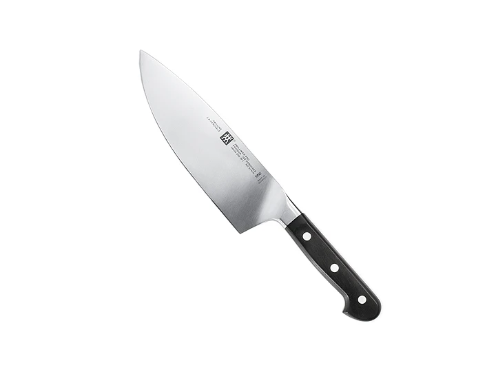 ZWILLING Pro 8″ Wide Chef’s Knife – Sturdy, heavy knife with broad, strong blade and fine cutting edge. The all-rounder for professionals and hobby chefs suitable for chopping herbs, cutting vegetables, slicing and dicing fish and meat. Can be used in the circular, rocking and chopping motion.